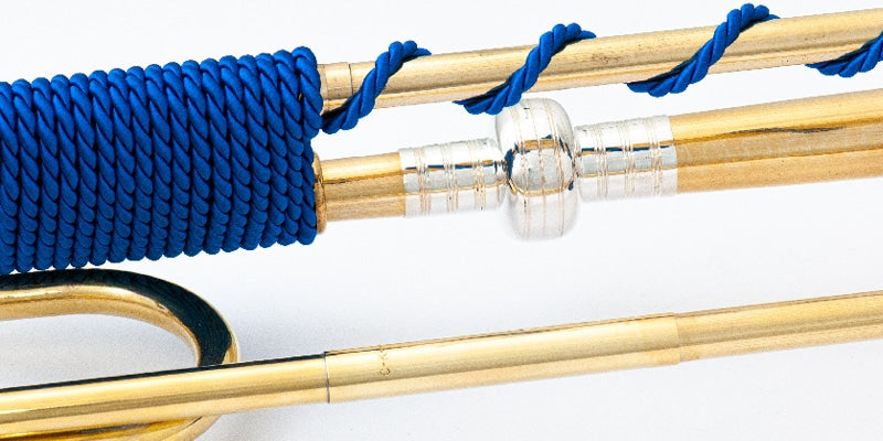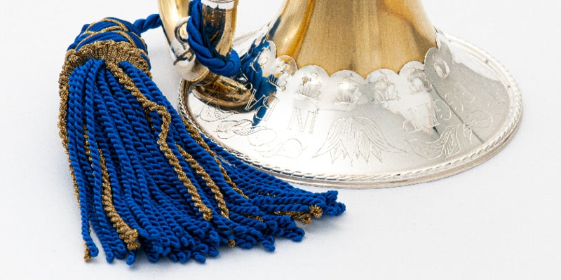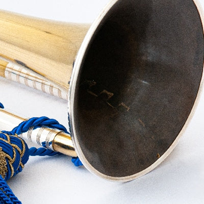 In order to come as close as possible to the sound of historical instruments, Egger makes replicas according to traditional methods. All tubes as well as the bell of the instrument are made from Nuremburg brass, soldered from hammered brass sheets and therefore show a soldering seam. The garland is hand engraved and silver plated, while the ball and ferrules are engraved according to the originals and also silver plated. The MDC trumpet is burnished by hand according to historical methods before it is polished.