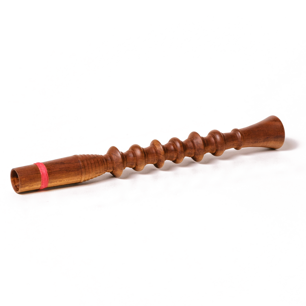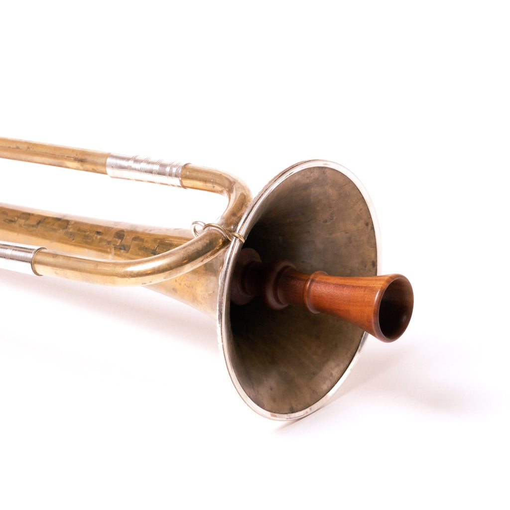 Vienna 1/2 Step Model – Handmade in Switzerland and based on examples in the Kunst Historisches Museum Wien. These mutes are fairly soft, providing a focused sound. They will produce a bright and buzzy sound when played loudly. This model raises the pitch of the trumpet by 1/2 step. Made of plum wood with a diameter of 6.2mm. This mute has a waxed string wrapping for added security when inserted in the bell.